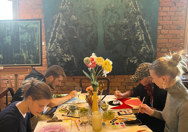 Unsere Sip & Paint Workshops eignen sich für Firmen-Teambuilding und private Feiern wie Junggesell:innenabschiede oder kreative Abende. Gemeinsam gestalten wir euer Event ganz individuell und sorgen für unvergessliche Momente voller Kreativität und Spaß.